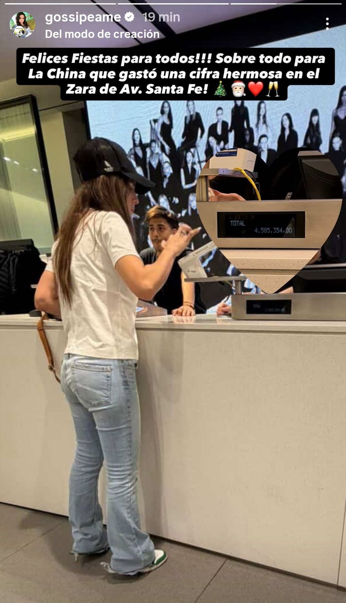 A través de sus redes sociales, escribió sobre una foto: "¡Felices Fiestas para todos! Sobre todo para La China que gastó una cifra hermosa en el Zara de avenida Santa Fe".