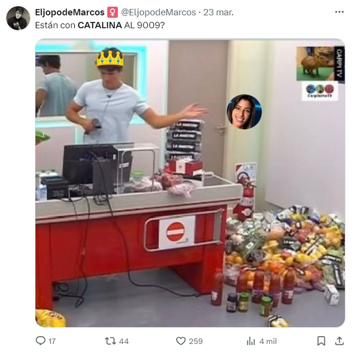 Los fans del Primo salieron a castigarla en las redes con memes y directamente pidiendo su eliminación de reality. “Catalina al 9009″, se volvió tendencia en las últimas horas en la red social X, motivando a los usuarios a votarla para que sea eliminada.