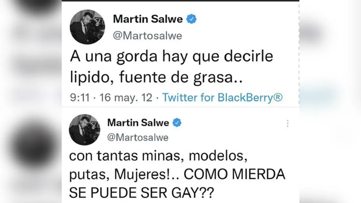 Tras la grave acusación de Marian Farjat, ahora aparecen viejos y duros tuits de Martín Salwe donde lo acusan de discriminador y homofóbico.