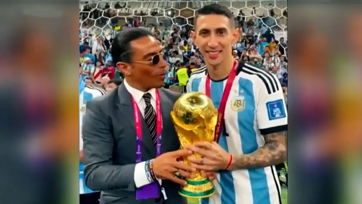 El chef turco, Salt Bae, apareció en medio de los jugadores argentinos en varias oportunidades. Incluso forzando un saludo del capitán y estrella del mundial, Leo Messi. Pero lo que más sorprendió e indignó a la FIFA es que en un momento, logró tener la copa enteramente en sus manos y ser fotografiado.