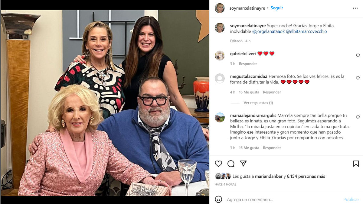 La velada fue en la casa de la figura de El Trece. La diva fue acompañada por su hija, Marcela Tinayre, que subió una foto del agasajo a su cuenta de Instagram.