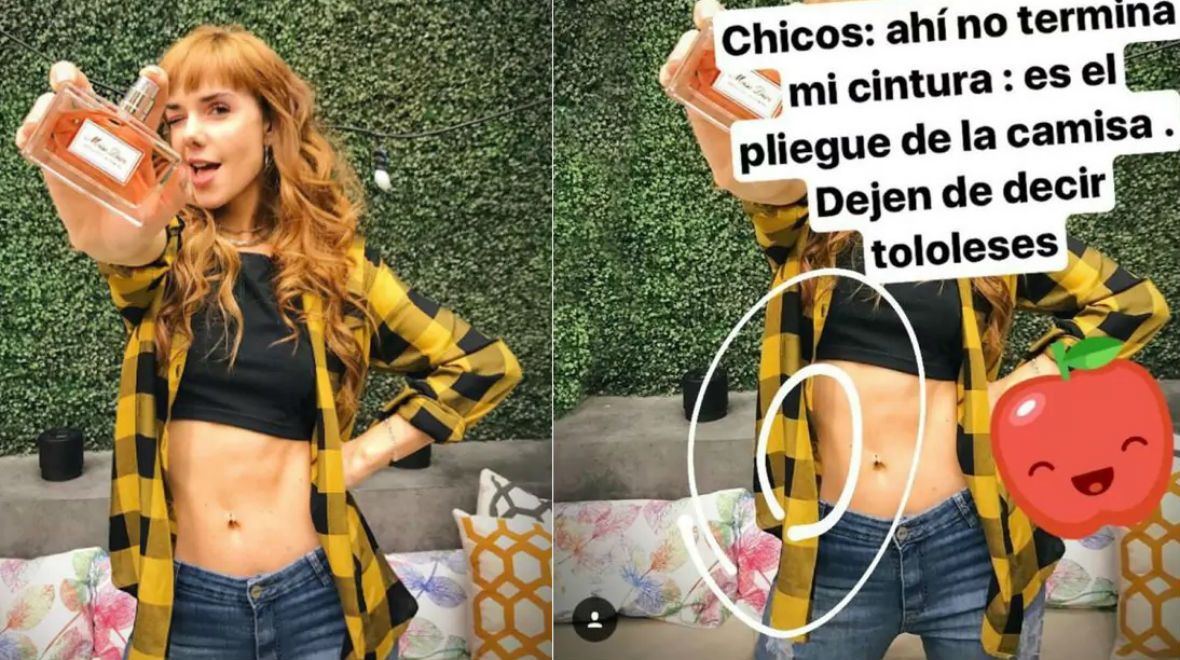 "Chicos, ahí no termina mi cintura. Es el pliegue de la camisa. Dejen de decir tololeses", escribió la actriz.