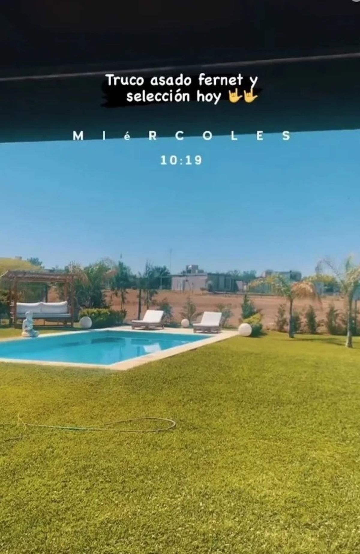 En medio de esta polémica, en las redes sociales generó revuelo la historia que subió el ex futbolista, donde mostraba una piscina en un jardín en un día a puro sol y añadió: "Truco, asado, Fernet y selección hoy".