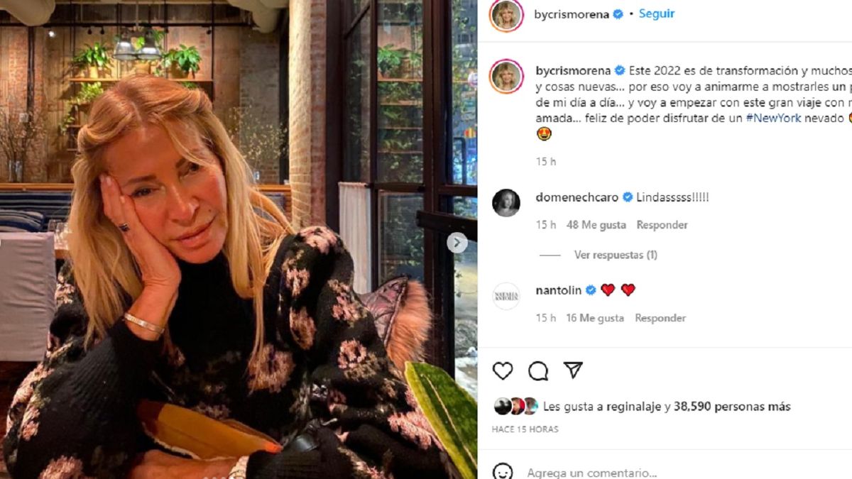 "Este 2022 es de transformación y muchos cambios y cosas nuevas… por eso voy a animarme a mostrarles un poco más de mi día a día… y voy a empezar con este gran viaje con mi nieta amada… feliz de poder disfrutar de un #NewYork nevado", expresó Cris Morena con una serie de postales desde el invierno de la Gran Manzana acompañada por su nieta.
