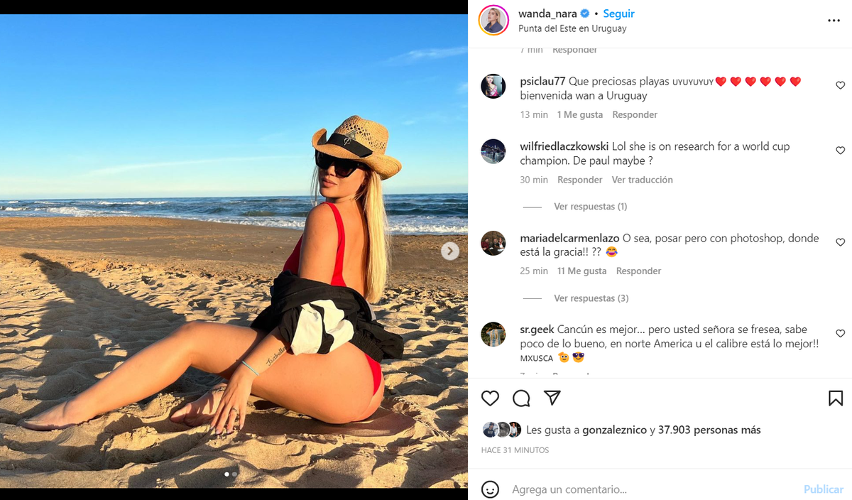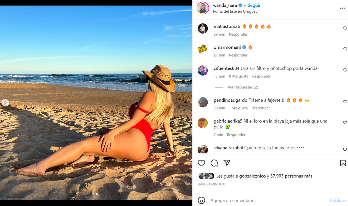 En su cuenta de Instagram, Wanda compartió una imagen, donde está posando muy sexy en una playa de Punta del Este. "Golden hour", escribió en la descripción del posteo.
