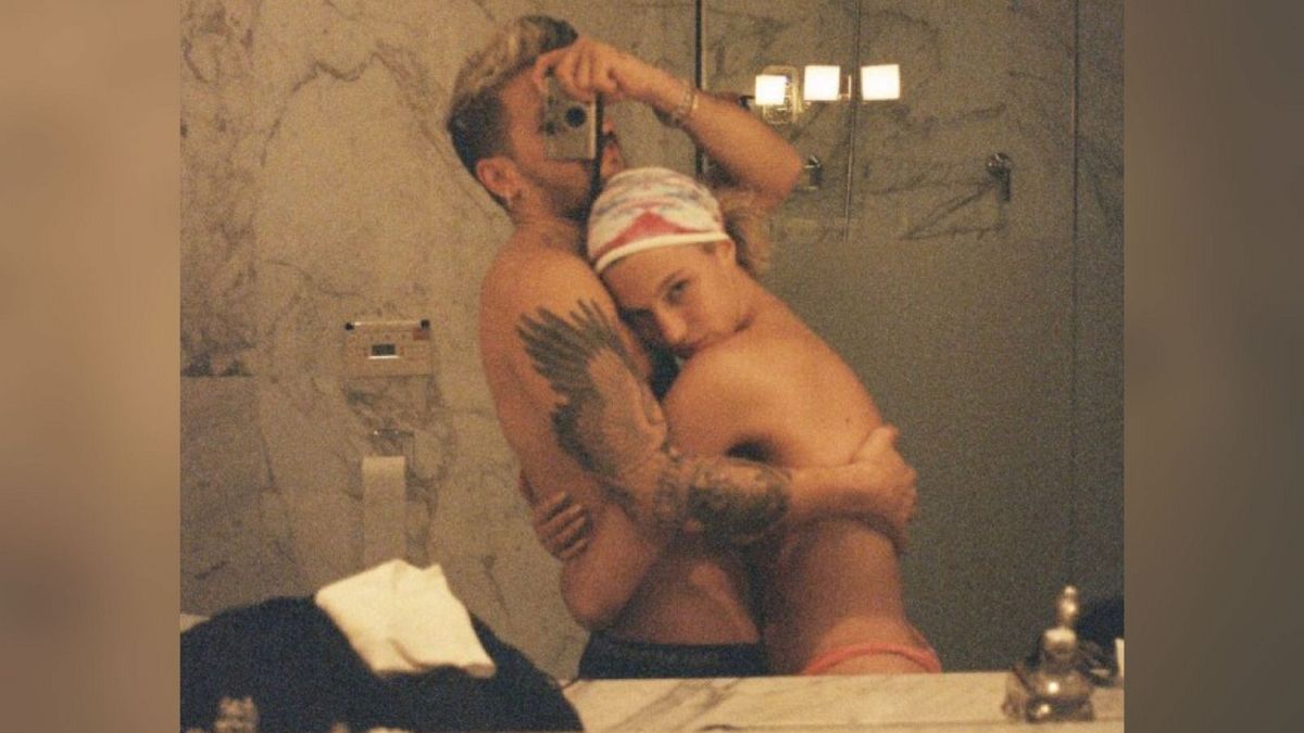 El cantante y la modelo compartieron una postal abrazándose, ambos en ropa interior y en el baño. Y se dedicaron una tierna, remarcando que están muy felices y enamorados.