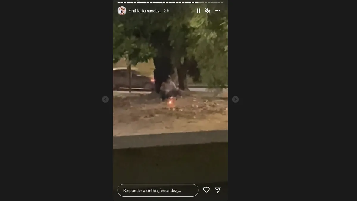 En el video en cuestión se ve a un hombre sentado sobre el pasto y haciendo una pequeña fogata debajo de un árbol, que a su vez estaba a pocos metros de la calle.