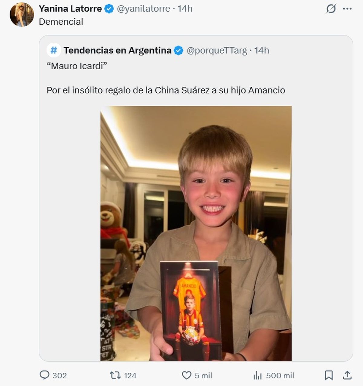 Lo cierto es que Yanina Latorre, quien se sabe que tiene marcadas diferencias con la China Suárez hace tiempo, se sumó a las críticas contra la actriz por el polémico regalo de Navidad a su hijo Amancio.