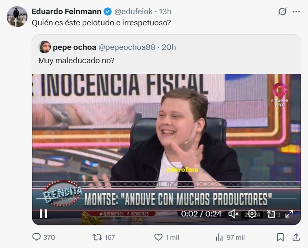 Lo cierto es que este comentario que el joven hizo con humor cayó muy mal entre los usuarios en redes quienes lo cuestionaron fuertemente. Incluso también colegas de ChicheGelblung salieron a criticarlo con todo, como es el caso de Eduardo Feinmann y Fabián Doman.