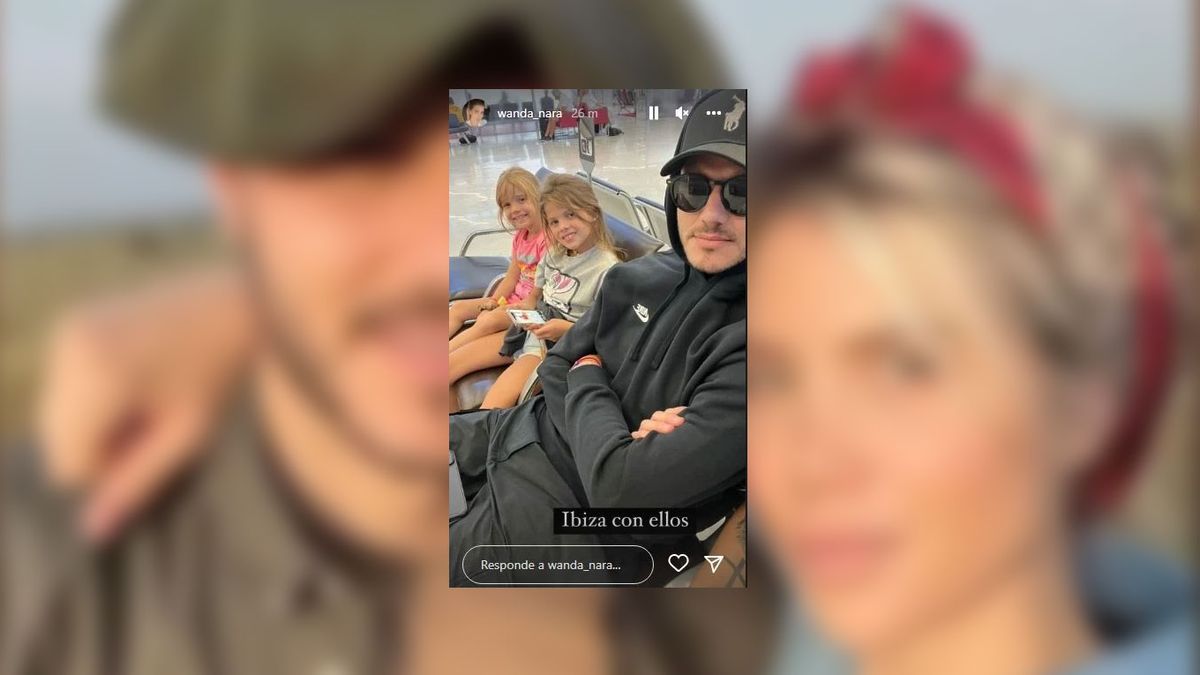 En las últimas horas, después de versiones de separación, Wanda Nara y Mauro Icardi se tomaron unos días de relax y viajaron con sus hijas a Ibiza. La botinera compartió una imagen en su Instagram, donde está junto al jugador en el aeropuerto.