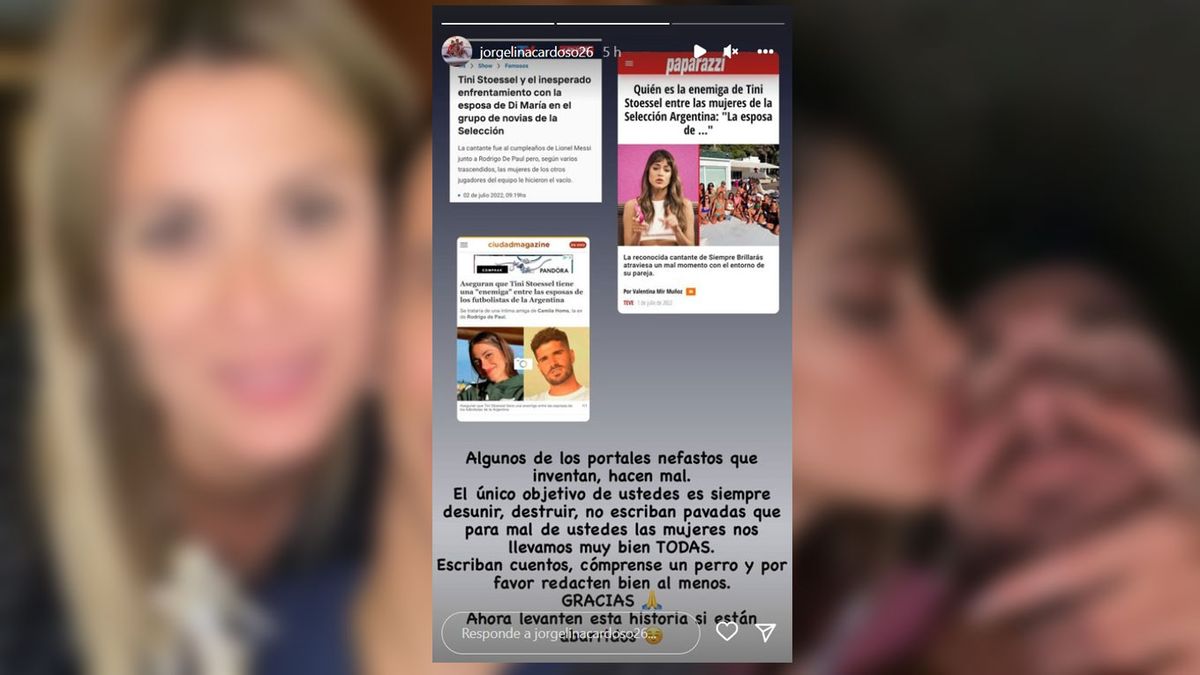 Jorgelina Cardoso, la mujer de Ángel Di María, se volcó a su cuenta de Instagram, luego de las versiones sobre una supuesta enemistad con Tini Stoessel.