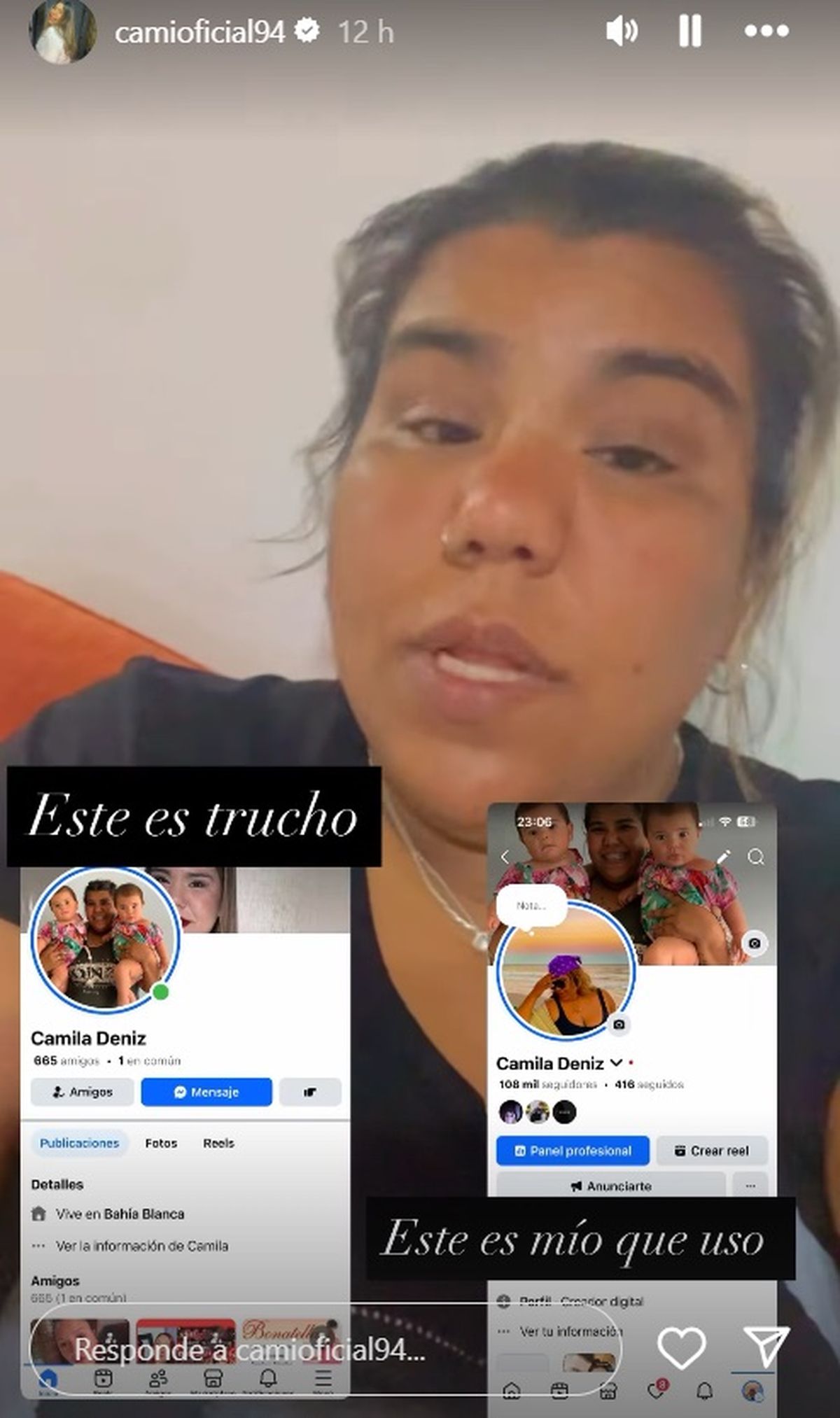 Desde sus historias de Instagram, Camilota expuso que se creó una cuenaa en Facebook con su nombre, su futo y la de sus sobrinas donde se solicita dinero y dejó en evidencia el caso con mucha bronca.