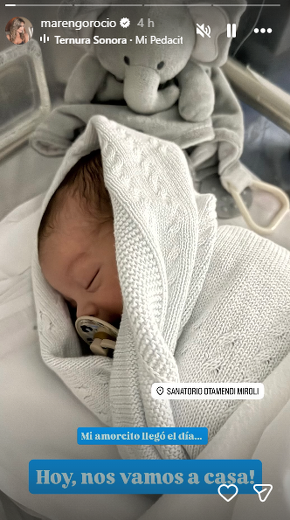 La modelo no tardó en compartir su emoción con sus seguidores: a través de sus historias de Instagram, mostró su felicidad y alivio con un mensaje breve pero cargado de amor:“Mi amorcito, llegó el día. Hoy nos vamos a casa”. Junto a esas palabras, publicó una imagen del pequeño dormido, acompañado por un peluche de elefante que parecía cuidarlo.
