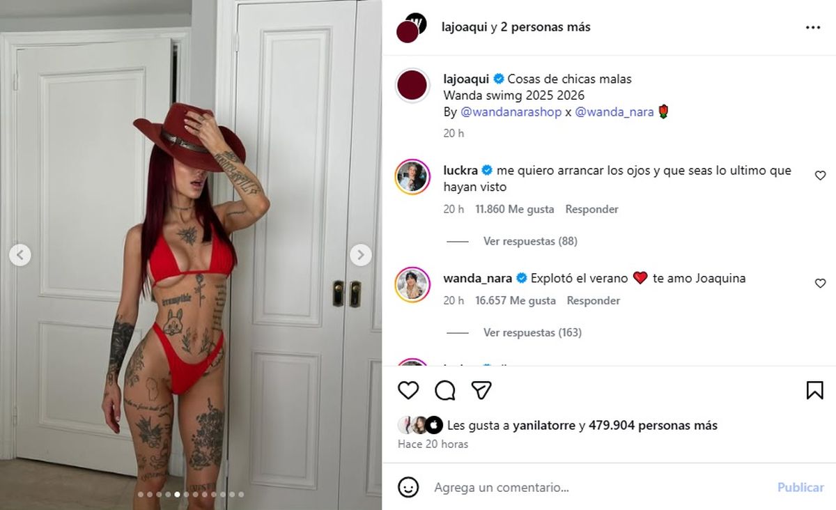 “Explotó el verano. Te amo Joaquina”, comentó luego Wanda en la publicación de su nueva amiga, quien posó en su flamante casa con parque y pileta. Al tiempo que su pareja, Luck Ra, no pudo evitar intervenir en la publicación con un comentario muy a su estilo que no hizo más que desatar la euforia de los seguidores. “Me quiero arrancar los ojos y que seas lo último que hayan visto”, fue el piropo del cantante cordobés que hizo que la publicación se viralizase en cuestión de minutos.