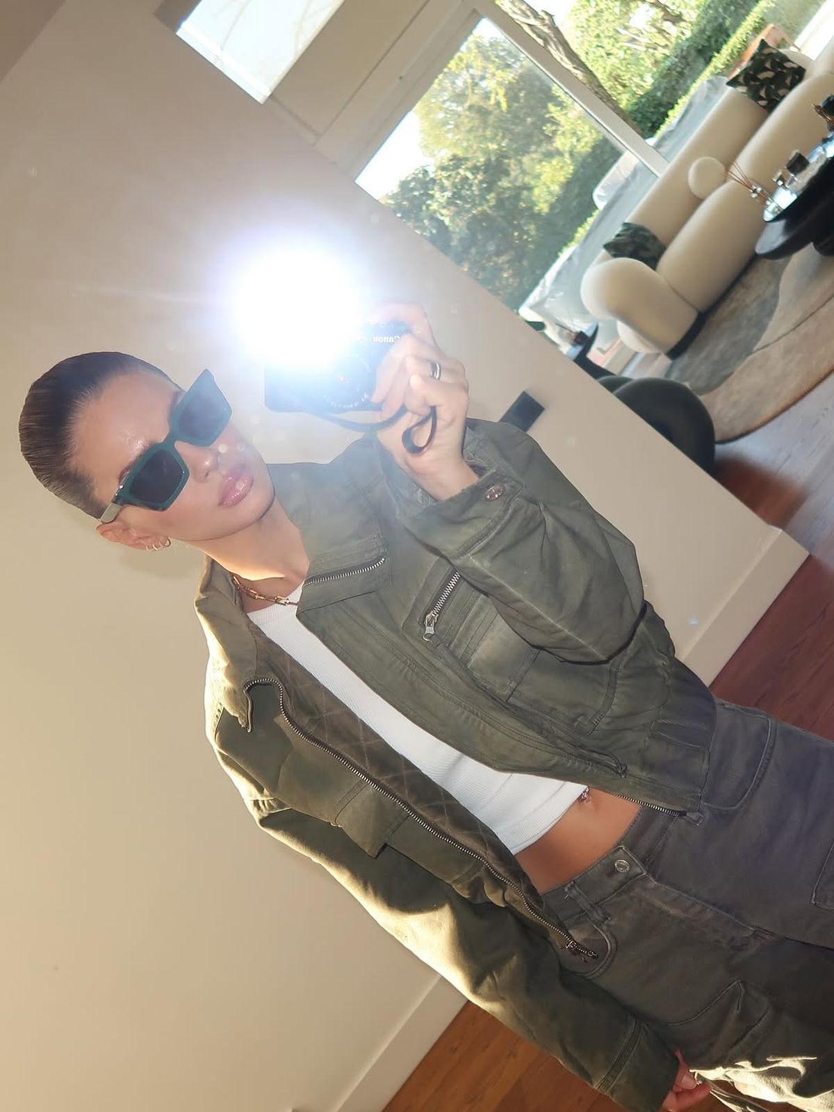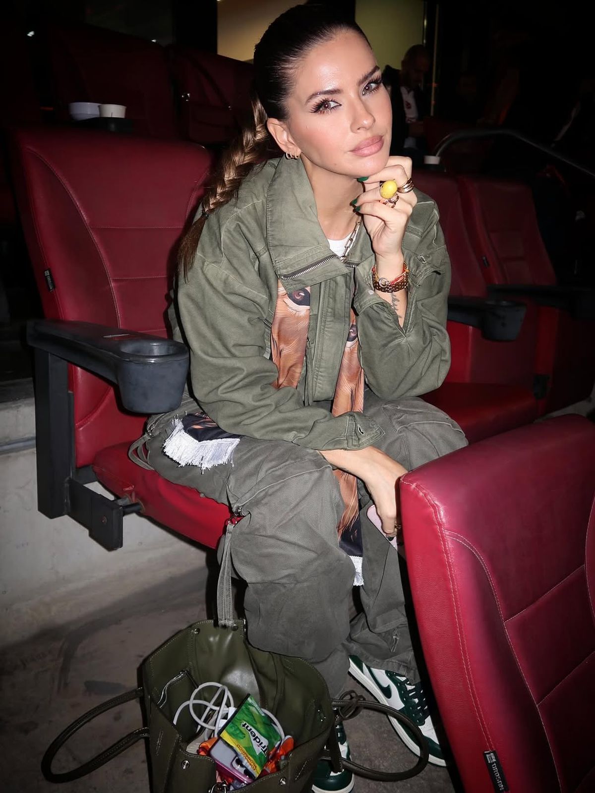 La primera en reaccionar fue la ex Casi Ángeles, quien compartió en sus redes una serie de fotos desde el palco del estadio, el mismo que solía ocupar Wanda en los partidos del delantero. En las imágenes, la actriz se mostró relajada y segura, luciendo un outfit verde oliva: un pantalón cargo, campera bomber a juego y una remera blanca.