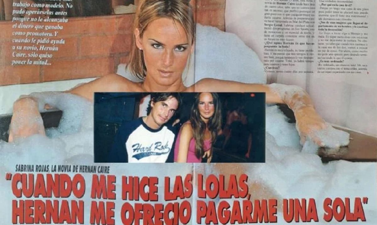 En una entrevista con el citado medio, Sabrina Rojas relató en esa época que tenía operarse las lolas y su novio, que era el conductor Hernán Caire, le contestó de manera sorprendente que sólo le pagaría una de las dos. "Cuando me hice las lolas Hernán me ofreció pagarme una sola", reveló la actriz en la entrevista.