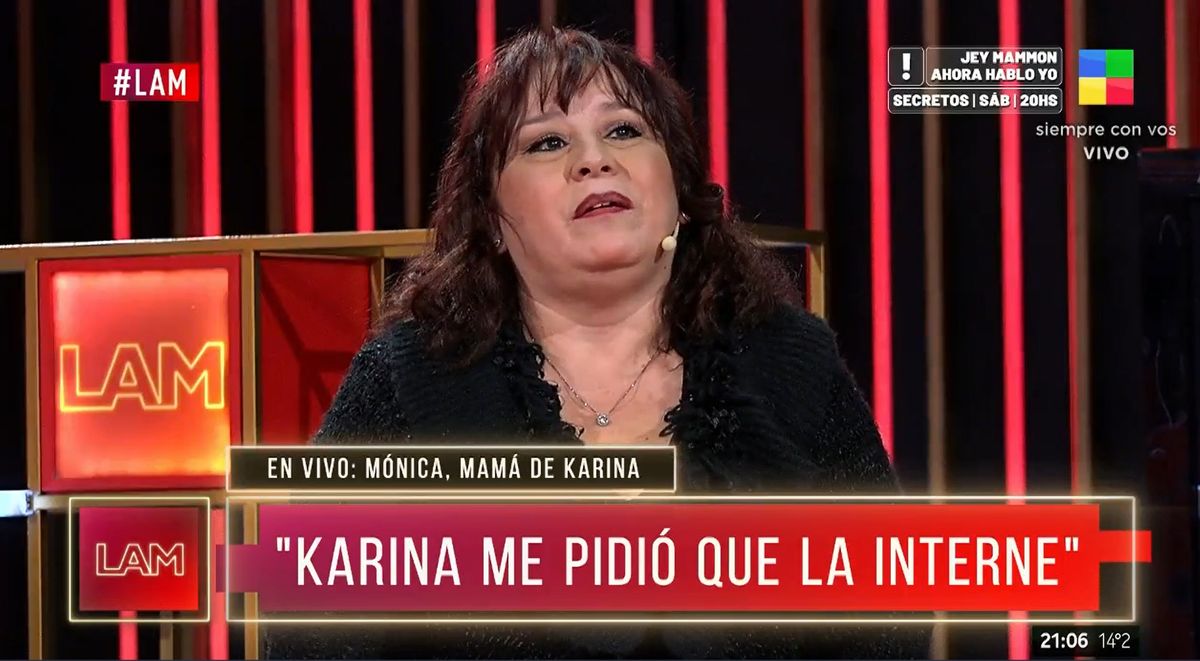 "Una vez estaba muy mal, no sé si se va a enojar... Pero me dijo: ‘mamá, por favor intername’", recordó conmovida la madre de la artista tropical.