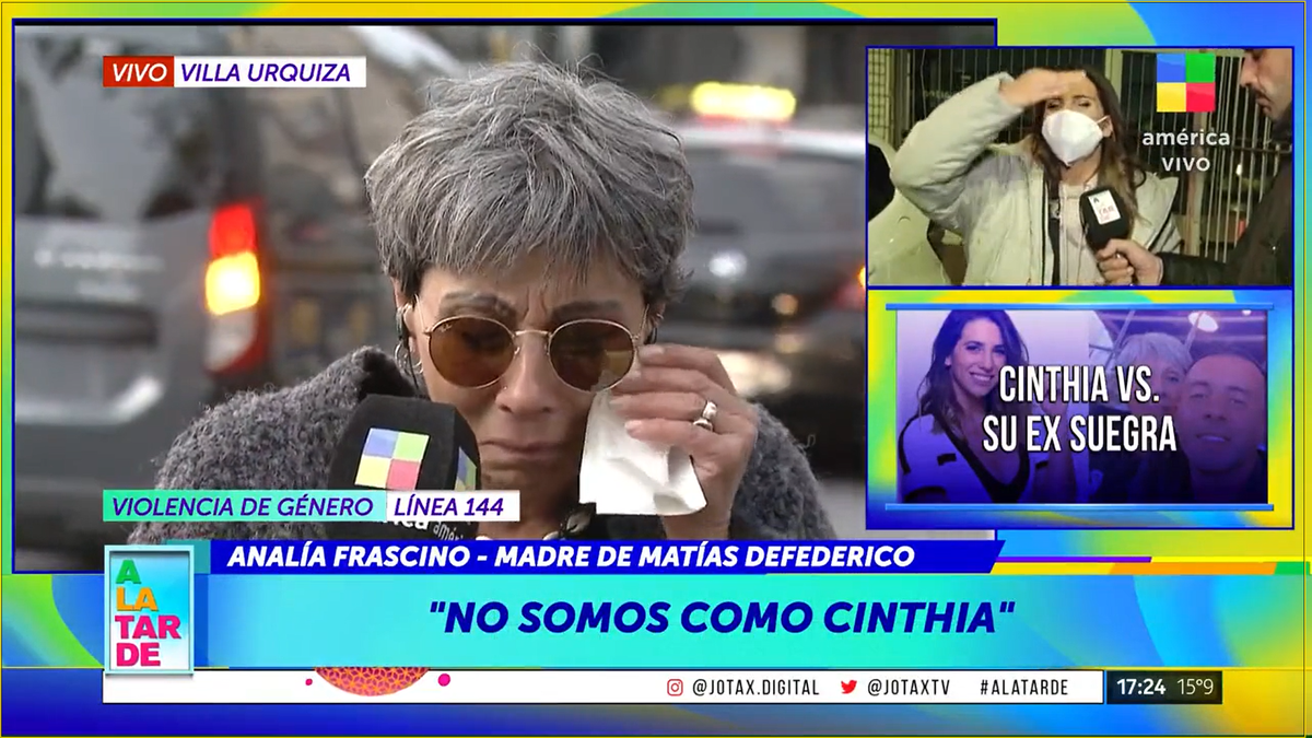 Analía Frascino, la mamá de Matías Defederico, estuvo nuevamente en A la tarde (América TV) y se mostró muy angustiada por la batalla mediática con Cinthia Fernández.