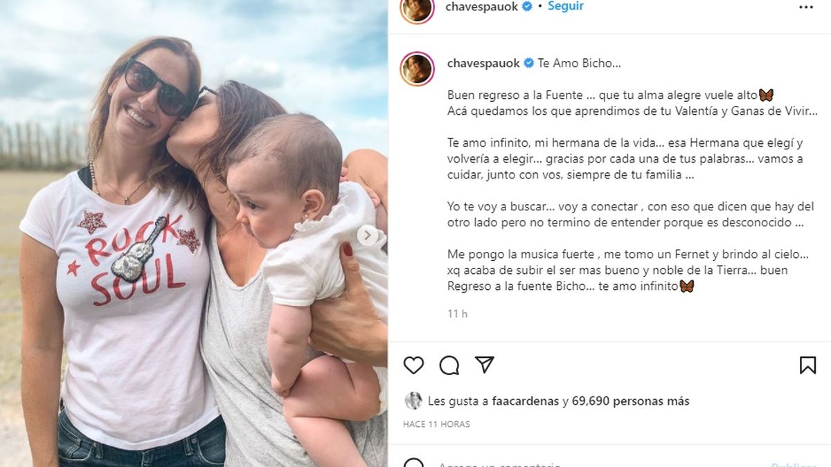 "Te amo infinito, mi hermana de la vida… esa hermana que elegí y volvería a elegir… gracias por cada una de tus palabras… vamos a cuidar, junto con vos, siempre de tu familia…", siguió Paula con mucho dolor.