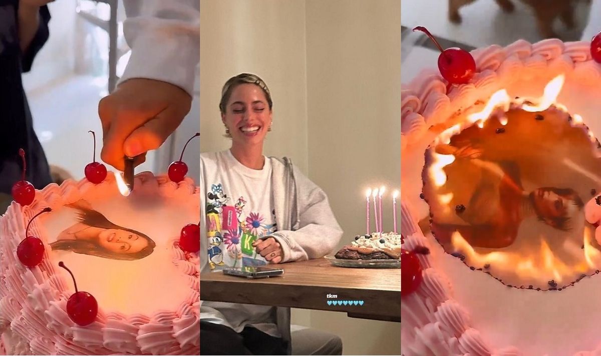 Allí puede verse un originalísimo pastel con la cara de Tini en tiempos de Violetta, el personaje que la catapultó a la fama, pero que al acercarle un fósforo esta imagen se quema y aparece una foto actual de la estrella de la canción pop ¡Una verdadera torta transformer!