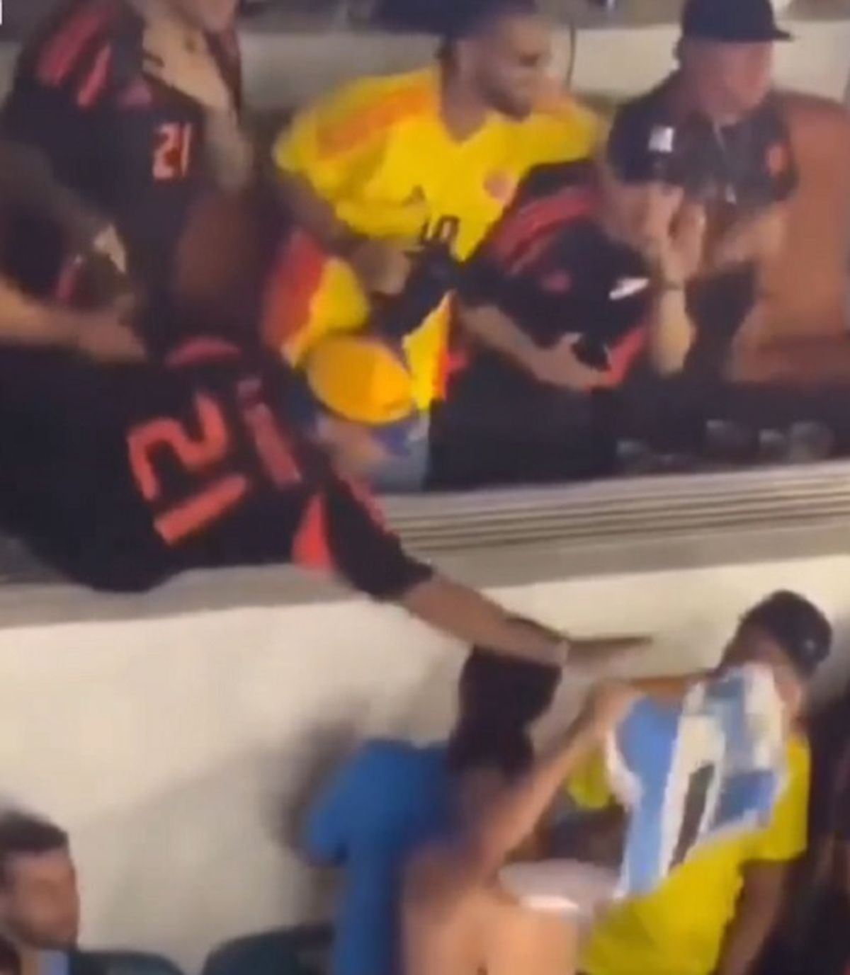 Se conocieron las imágenes de un amigo de él, el cantante Blessd, cuando intentó quitarle la camiseta de la Selección Argentina a un joven que se encontraba debajo del palco.