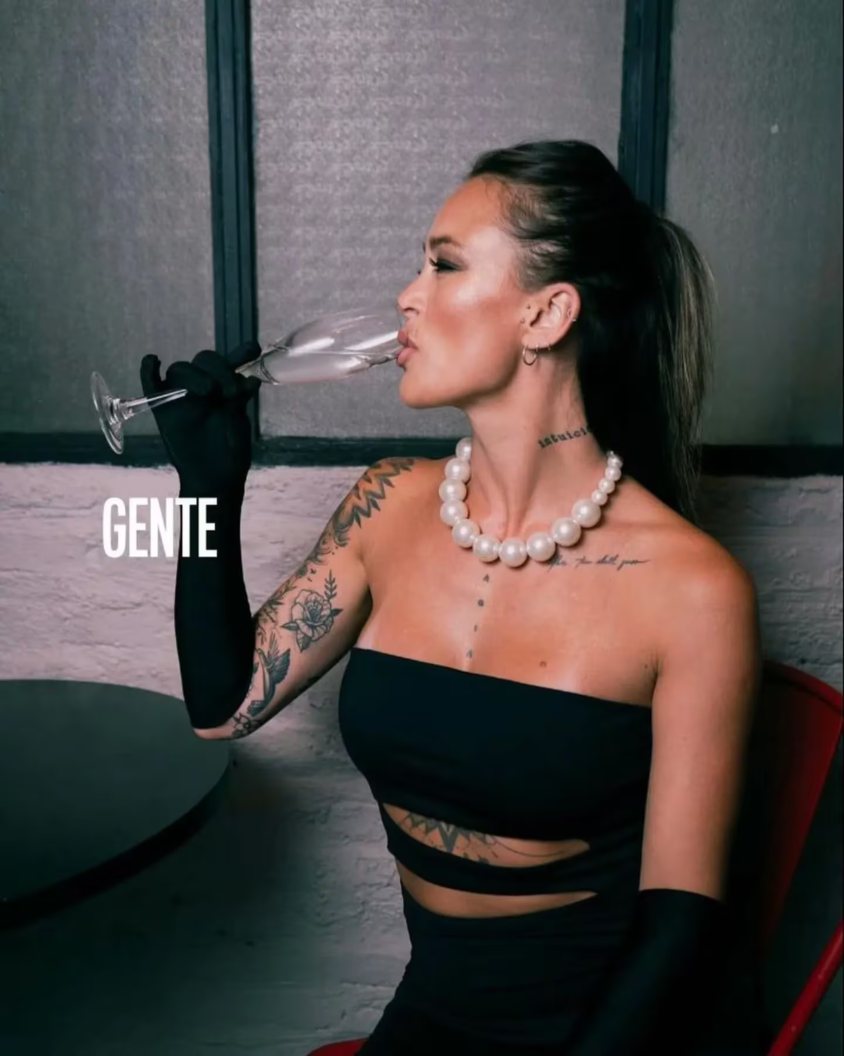 ¿Los detalles? La pieza es strapless y cuenta con aberturas cut out en la zona del abdomen. Como complemento, se puso un par de guantes negros larguísimos y un collar de perlas off white. Sin dudas, la Policía podría abrirse camino en el mundo de la moda.