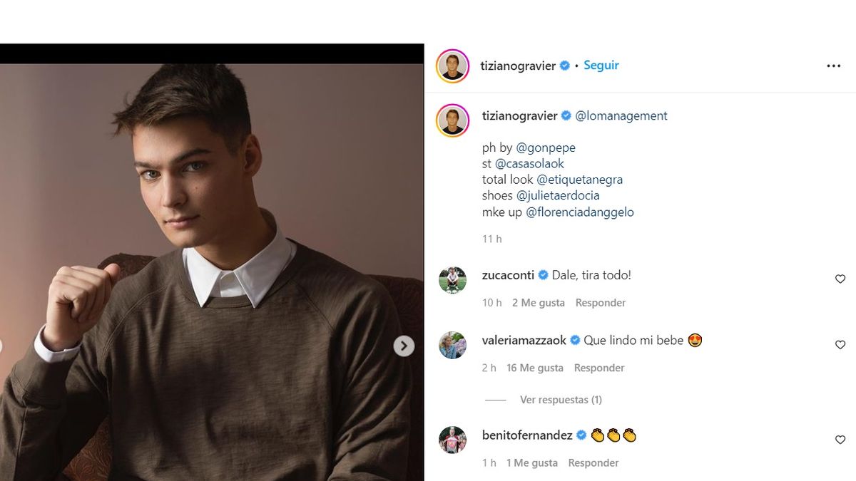 Fue su mamá, Valeria Mazza, quien compartió las imágenes de la producción en Instagram y él también hizo lo propio desde su cuenta. "Qué lindo mi bebé", comentó la top model en la publicación.