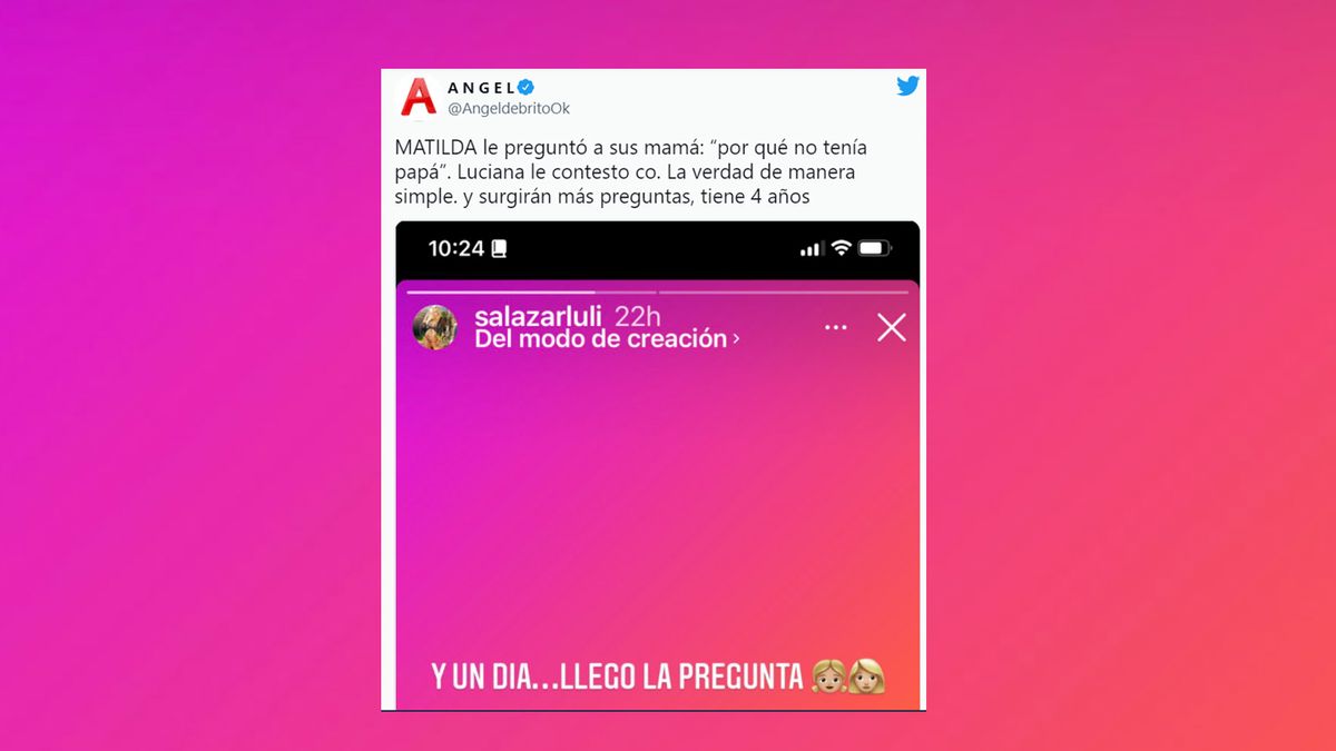 "Matilda le preguntó a su mamá: 'por qué no tenía papá'. Luciana le contesto con la verdad y de manera simple y surgirán más preguntas, tiene 4 años", sostuvo el periodista de espectáculos.
