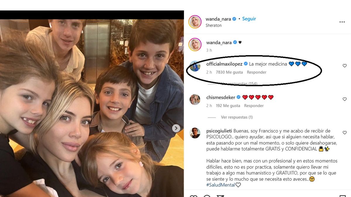 Lo cierto es que entre todos los comentarios que recibió el dulce posteo se destacó el de Maxi López, padre de tres de sus hijos, quien comentó las fotos del reencuentro de Wanda con su familia con muy buena onda: "La mejor medicina". Muy buen gesto.