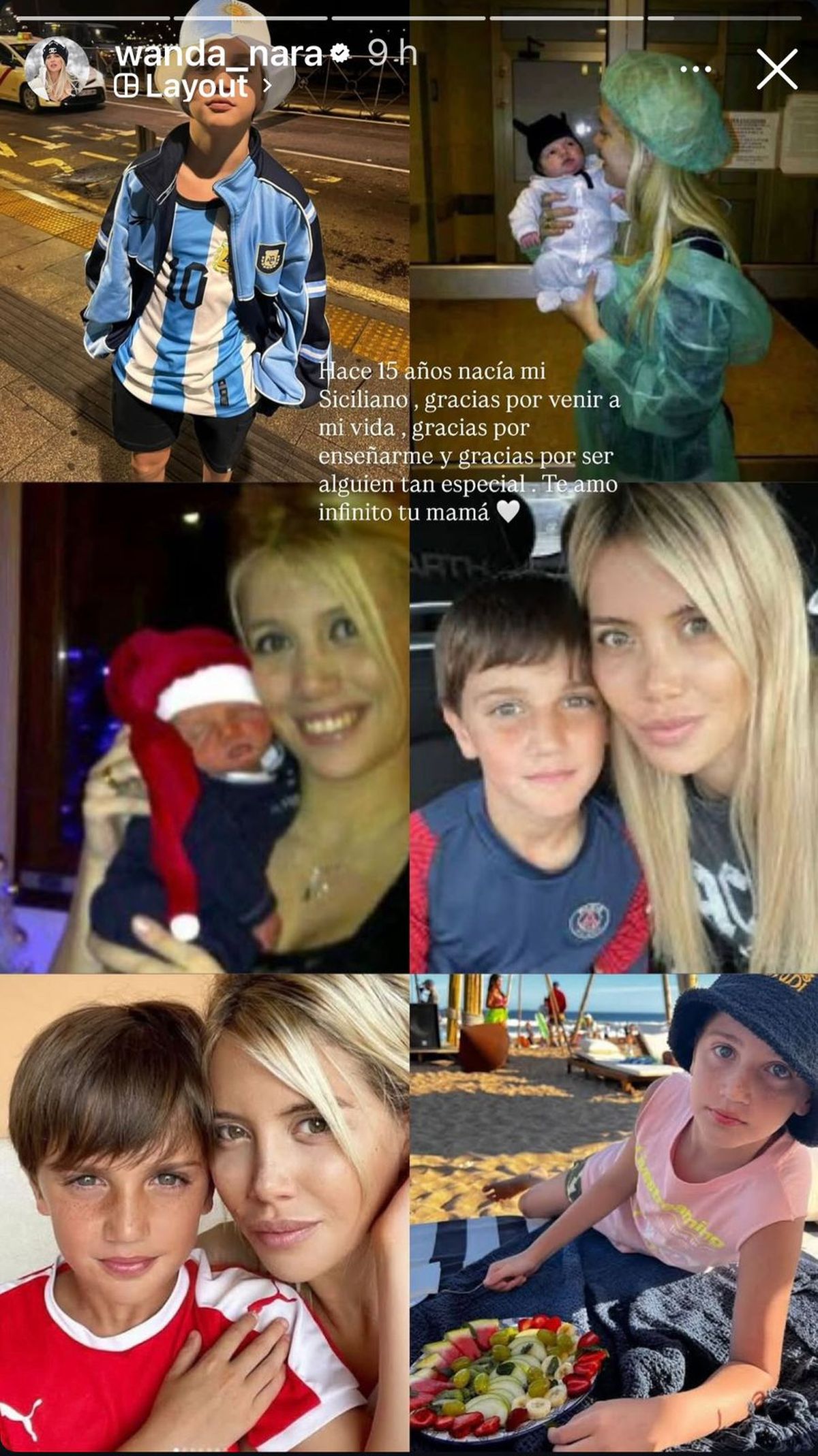 Así, con un collage de fotos del segundo de sus cinco hijos, Wanda Nara le dedicó unas tiernas palabras a Coqui, tal como lo llaman cariñosamente en la intimidad familiar, en sus historias virtuales de Instagram: "Hace 15 años nacía mi siciliano. Gracias por venir a mi vida, gracias por enseñarme y gracias por ser alguien tan especial. Te amo infinito tu mamá", algo cuanto menos llamativo. ¿O será que está pergeñando su meticuloso contraataque?