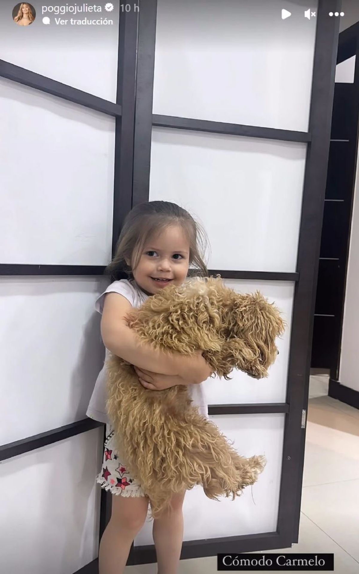 Ahora, Julieta Poggio, para terminar con los comentarios maliciosos, compartió este fin de semana en una historia de Instagram una foto de Caramelo.