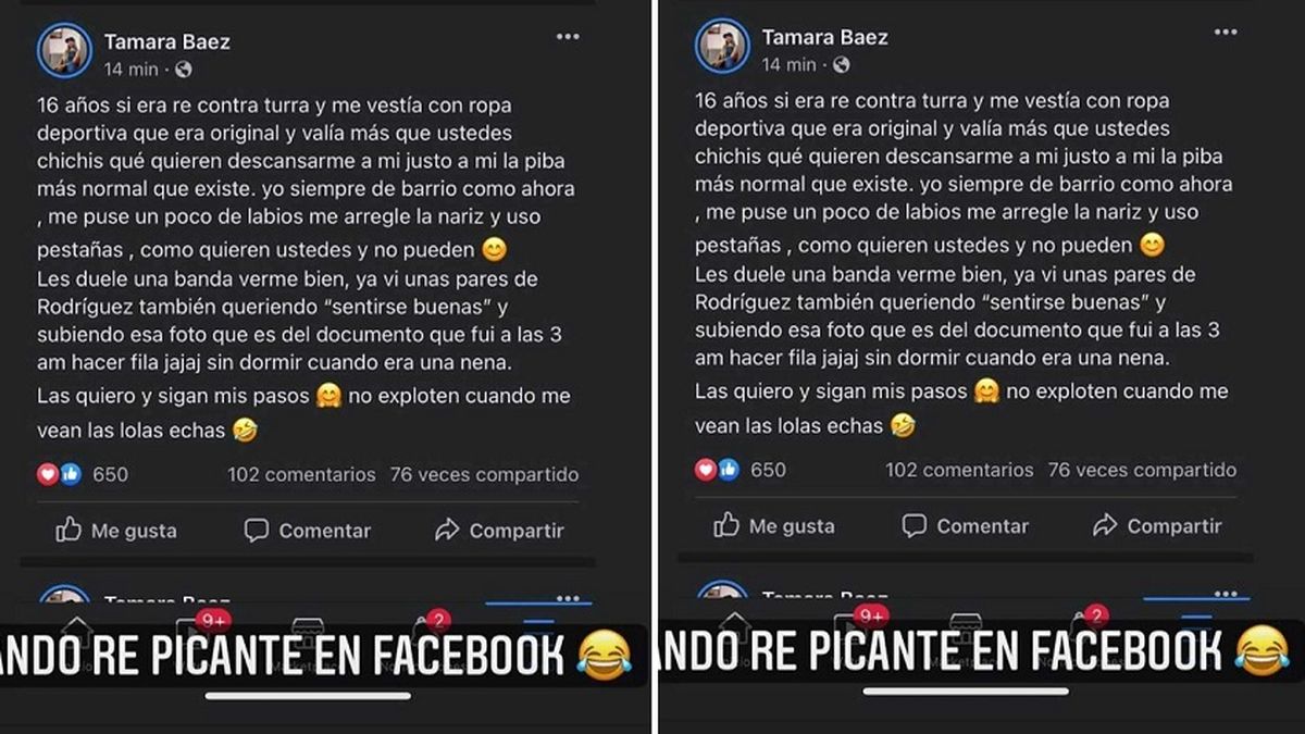 La instantánea de Tamara Báez, novia de L-Gante, circula desde hace días en las redes y, según el entorno de la cantante, es una imagen de un registro privado que solo tenía en el celular que perdió. Una de las fotos que trascendió de ella, que se lanzó como cantante, a través de las redes sociales la muestra muy diferente al presente.