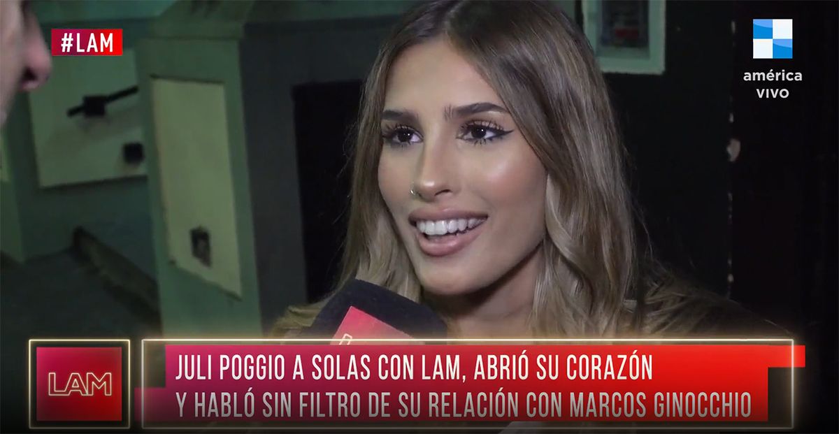 Julieta Poggio habló con LAM (América TV) y se refirió al enigmático que había lanzado el viernes Yanina Latorre. "Me da risa porque ya se dijo tanto, que nadie cree nada", lanzó la ex participante de Gran Hermano 2022.