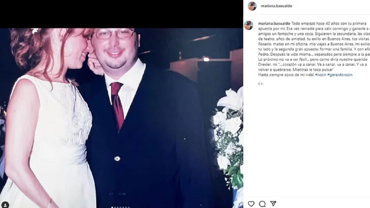 Mariana Basualdo, quien fue la primera mujer de Gerardo Rozín y madre de su hijo Pedro, el hijo mayor del periodista, se despidió del periodista con un sentido posteo en Instagram.