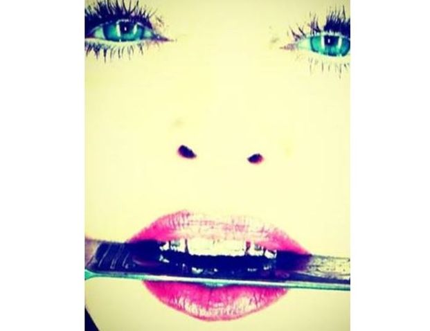 En las fotografías, la intérprete de "Music" muestra un grill, una pieza de metal hecha con oro y diamantes, que se coloca sobre los dientes.