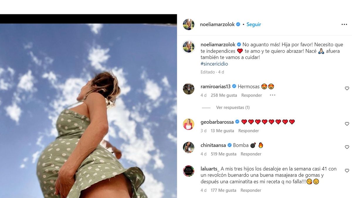 Noelia Marzol le contestó: “Pero ya está llena”, se puede leer en el posteo, y arriba de la fotografía comentó: “¿Qué dice?”, escribió la actriz de Sex.