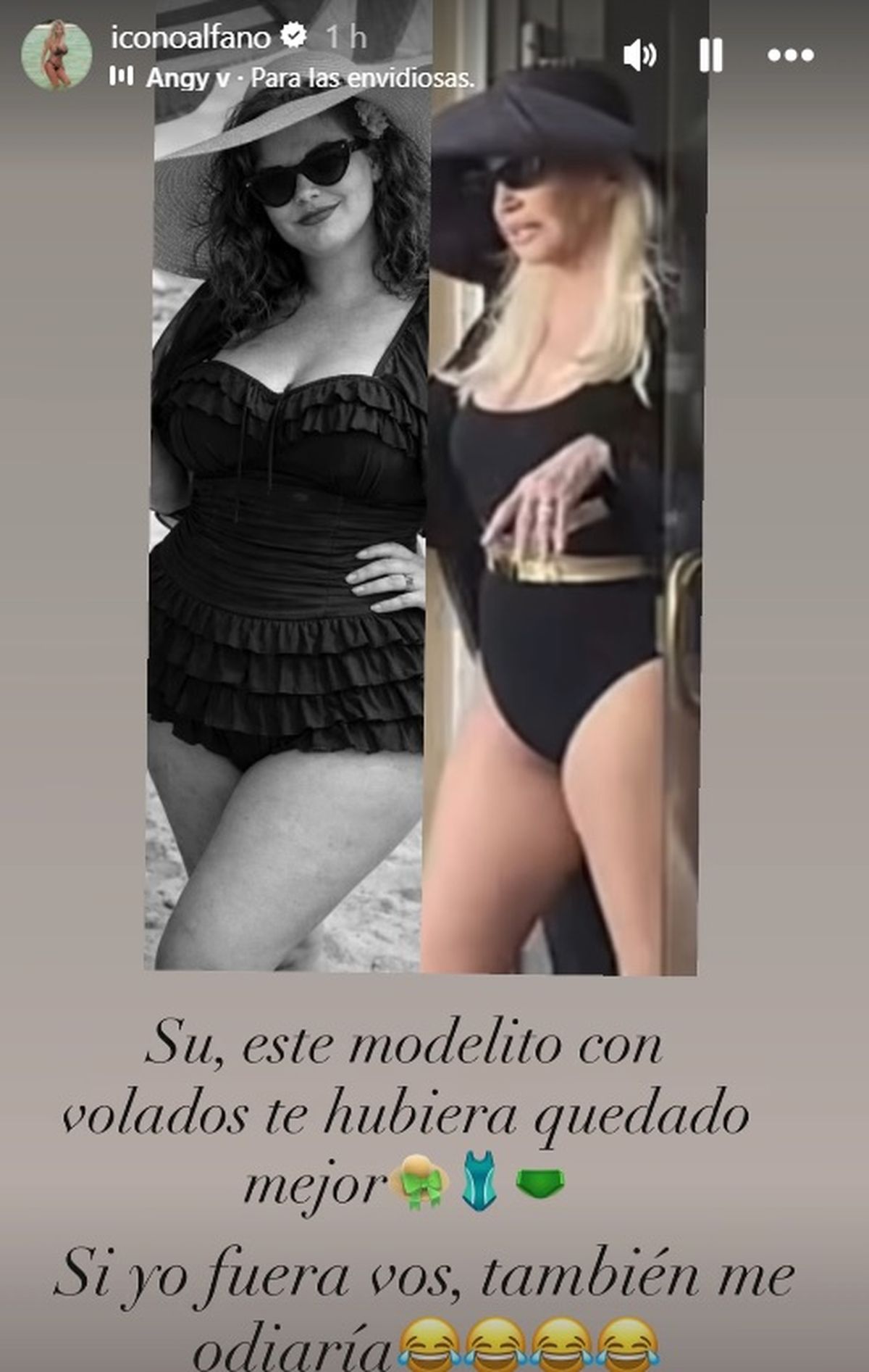 Y no conforme con esto, sumó otro mensaje con una postal de ella en la playa durante el verano en bikini acompañado de la canción Para las envidiosas de Angy v. "¡La que puede, puede!", expresó sumando otra vez el emoji de una carcajada.
