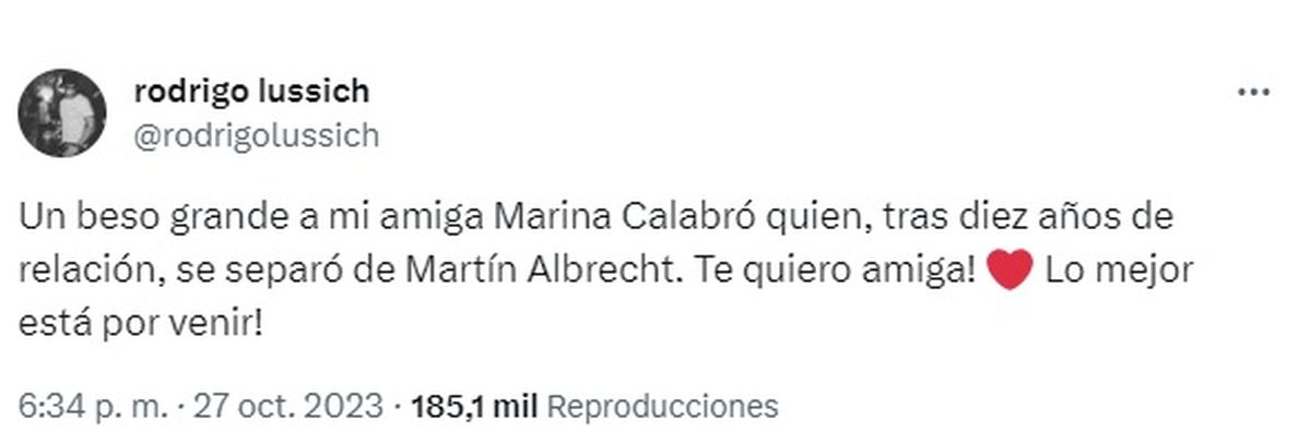 "Lussich le dijo ‘bueno me dijiste que Ángel lo iba a contar, ¿por qué no lo puedo contar yo en Twitter?’" fue la respuesta del conductor de Socios del espectáculo a la menor de las Calabró confió Yanina, indignada por la inescrupulosa actitud de Rodrigo por lo que lo calificó de "cínico" al preferir perder una amistad de 20 años sólo por una primicia.