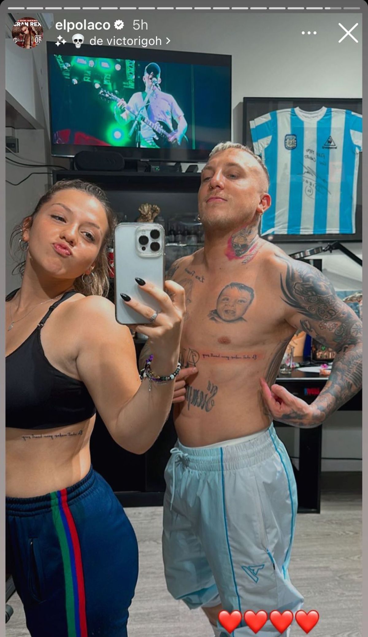 En la tierna imagen el cantante, también padre de Sol y Alma de sus anteriores relaciones con Karina La Princesita y Valeria Aquino, mencionó a su pareja en la red social y agregó el emoji de un corazón.
