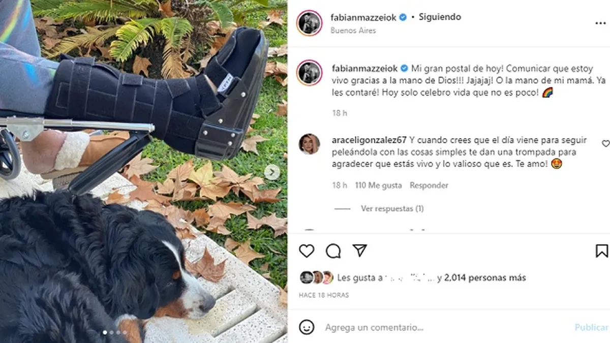 El miércoles 18 de mayo, feriado por el Censo 2022, Fabián Mazzei sorprendió a todos sus seguidores en Instagram luego de publicar una foto de su pierna con una bota ortopédica.