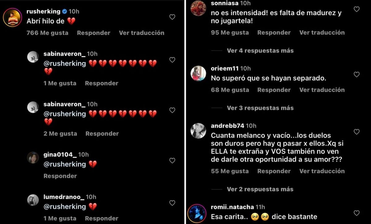 Y él explicó: explicó: “Quería contarles que con Euge no estamos más juntos, y quería contárselos porque sé que hay muchos que se preocuparon. Sepan que nos queremos, y quisimos, mucho y que ninguno de los dos lastimó al otro. No se crean las boludeces que dicen por ahí, Euge es de las personas más buenas y sinceras que conocí en mi vida. Gracias por preocuparse”.