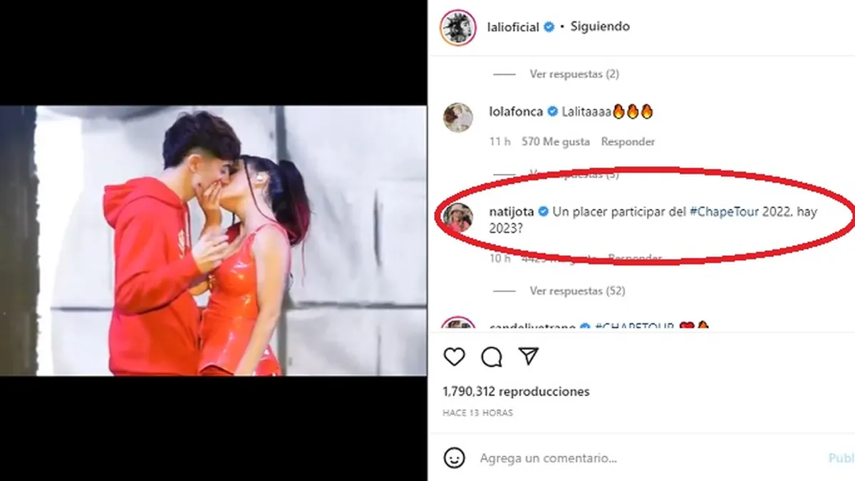 Nati Jota comentó el posteo de Lali Espósito con los chapes del show en Santa Fe, donde la influencer fue una las que subió al escenario para recibir su beso.