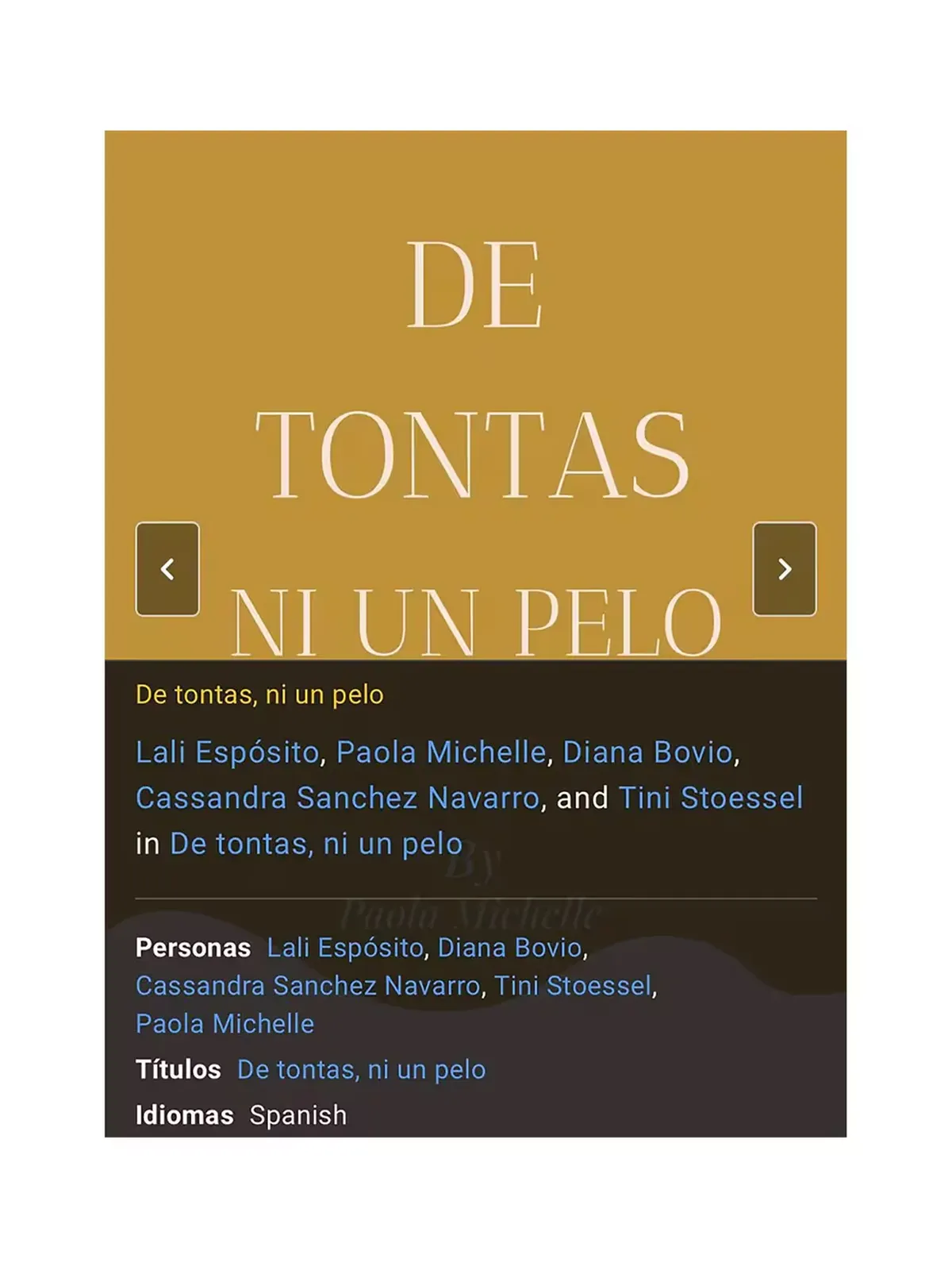 Según Internet Movie Database (IMDb), Tini y Lali estarán como estelares de una miniserie, que se llamará De tonta, ni un pelo. Este ambicioso proyecto -.con dos estrellas del pop- promete ser un verdadero éxito.
