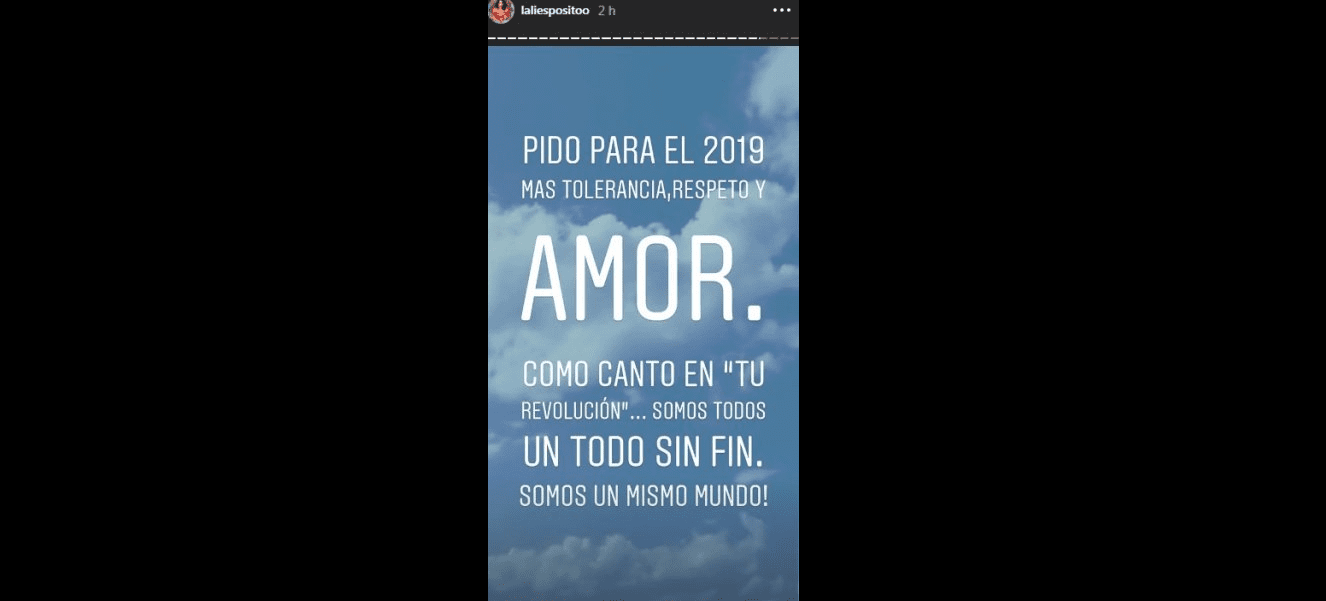 Falta apenas días para que arranque un nuevo año yLali Espósito se acordó de sus seguidores, compartiendo en las redes cálidos mensajes de amor y esperanza para el 2019.