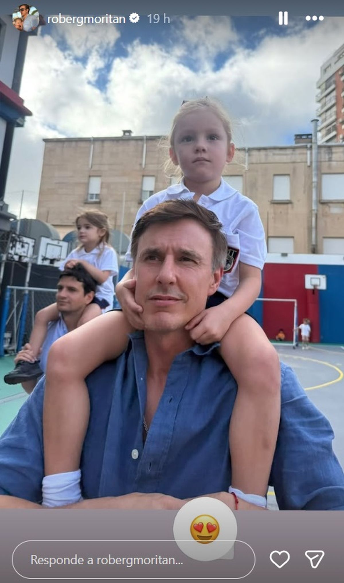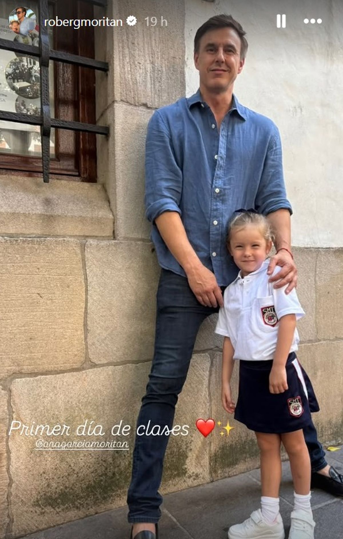 "Primer día de clases", expresó emocionado Roberto García Moritán desde sus historias de Instagram con una postal junto a su hija a pura sonrisa sobre el frente del colegio y acompañándola en el importane primer día de clases.