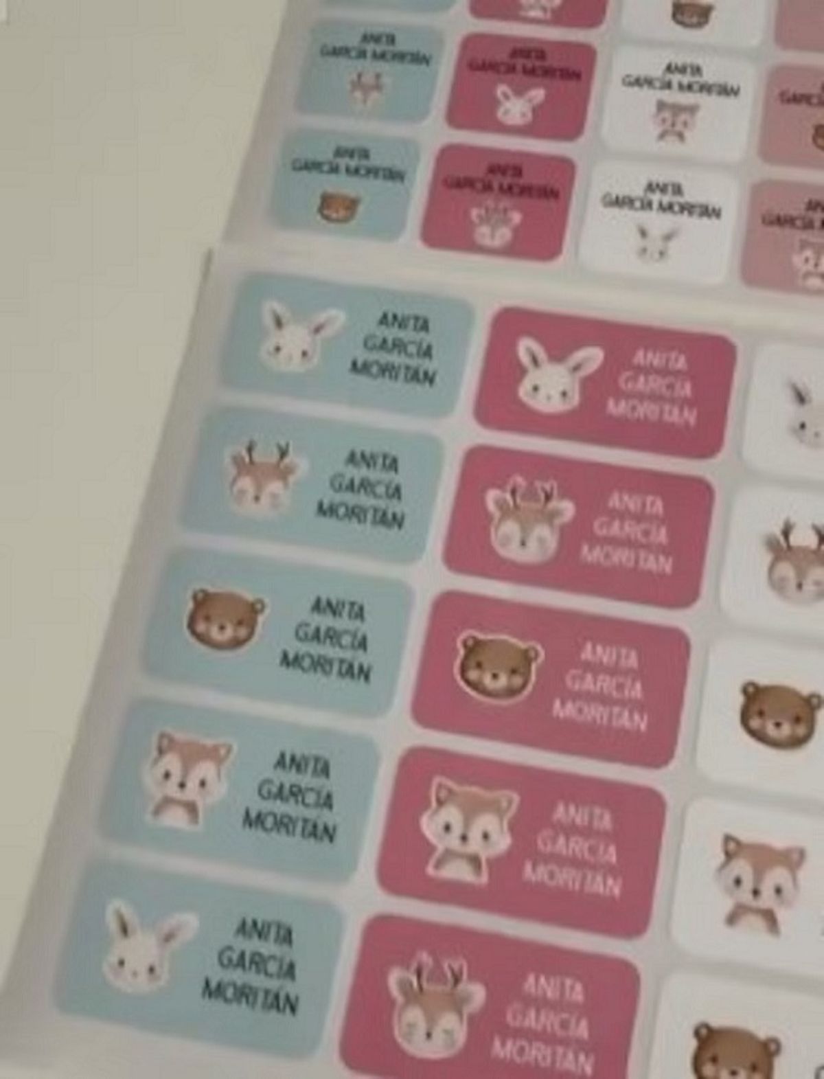 La modelo mostró en las redes sociales cómo fue preparando las etiquetas en colores celeste, rosa y rojo con en nombre de su hija para colocar en los útiles escolares.