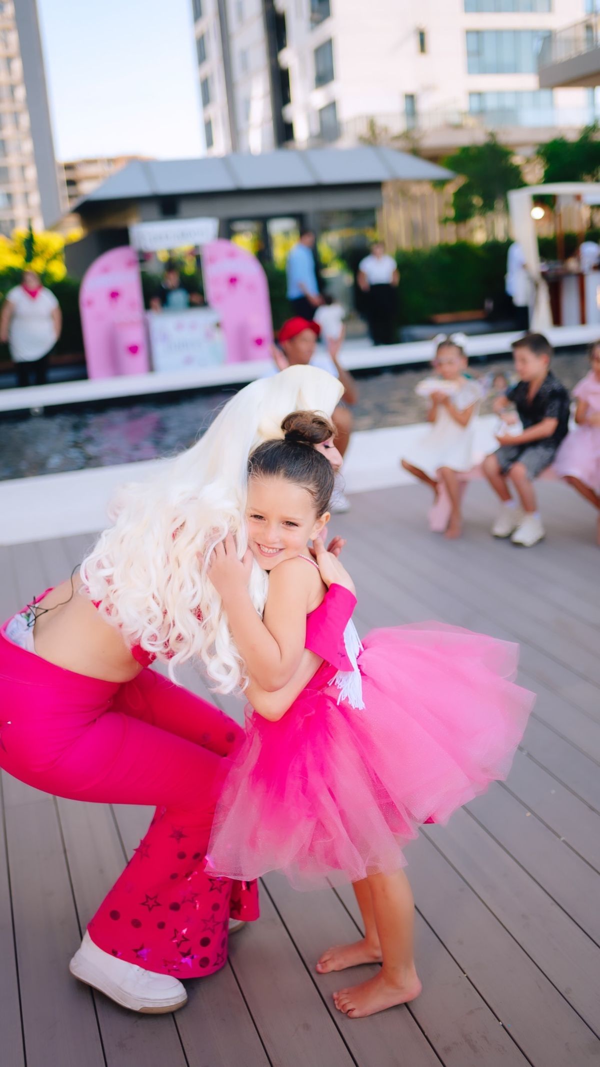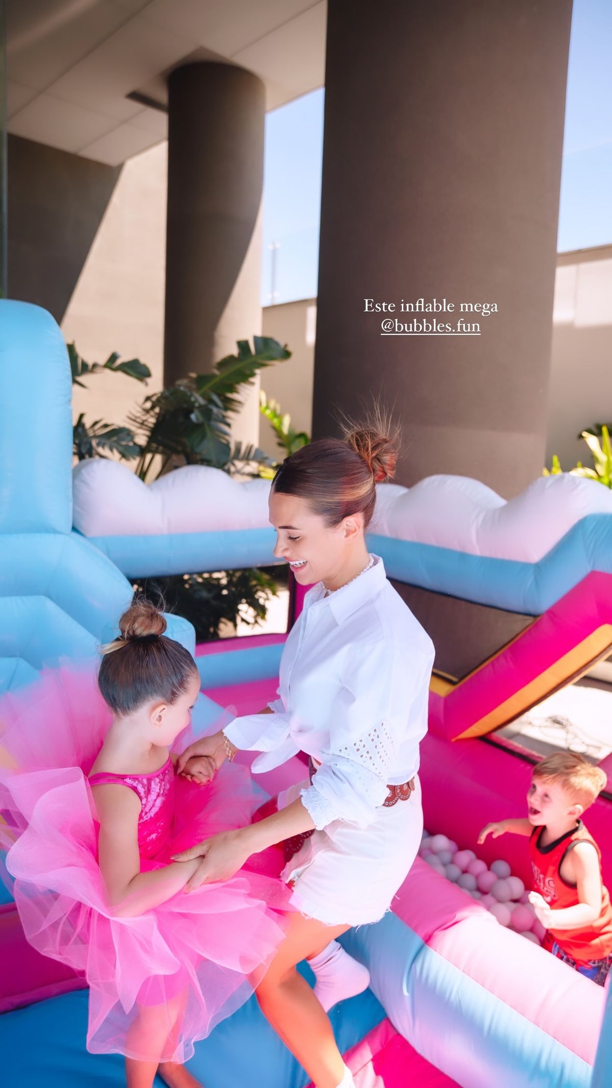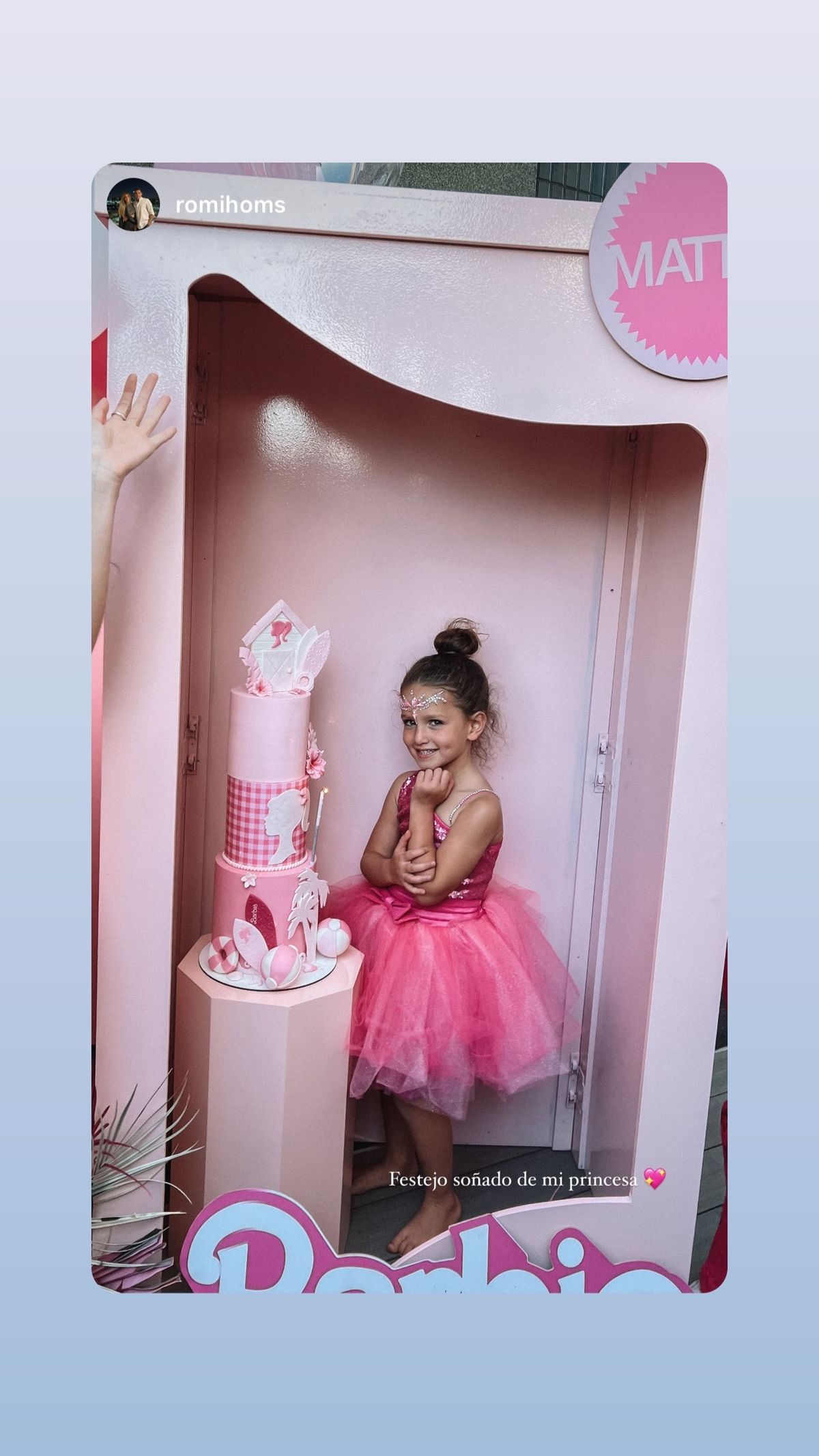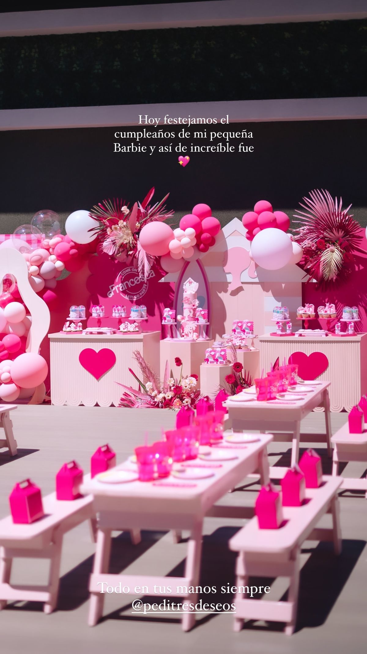 En las imágenes se pueden ver globos, mesas con platos y vasos y mini sillas en color rosa, inflables y un show en vivo. También hubo una caja grande de la muñeca Barbie para que los invitados y la agasajada pueden sacarse fotos.