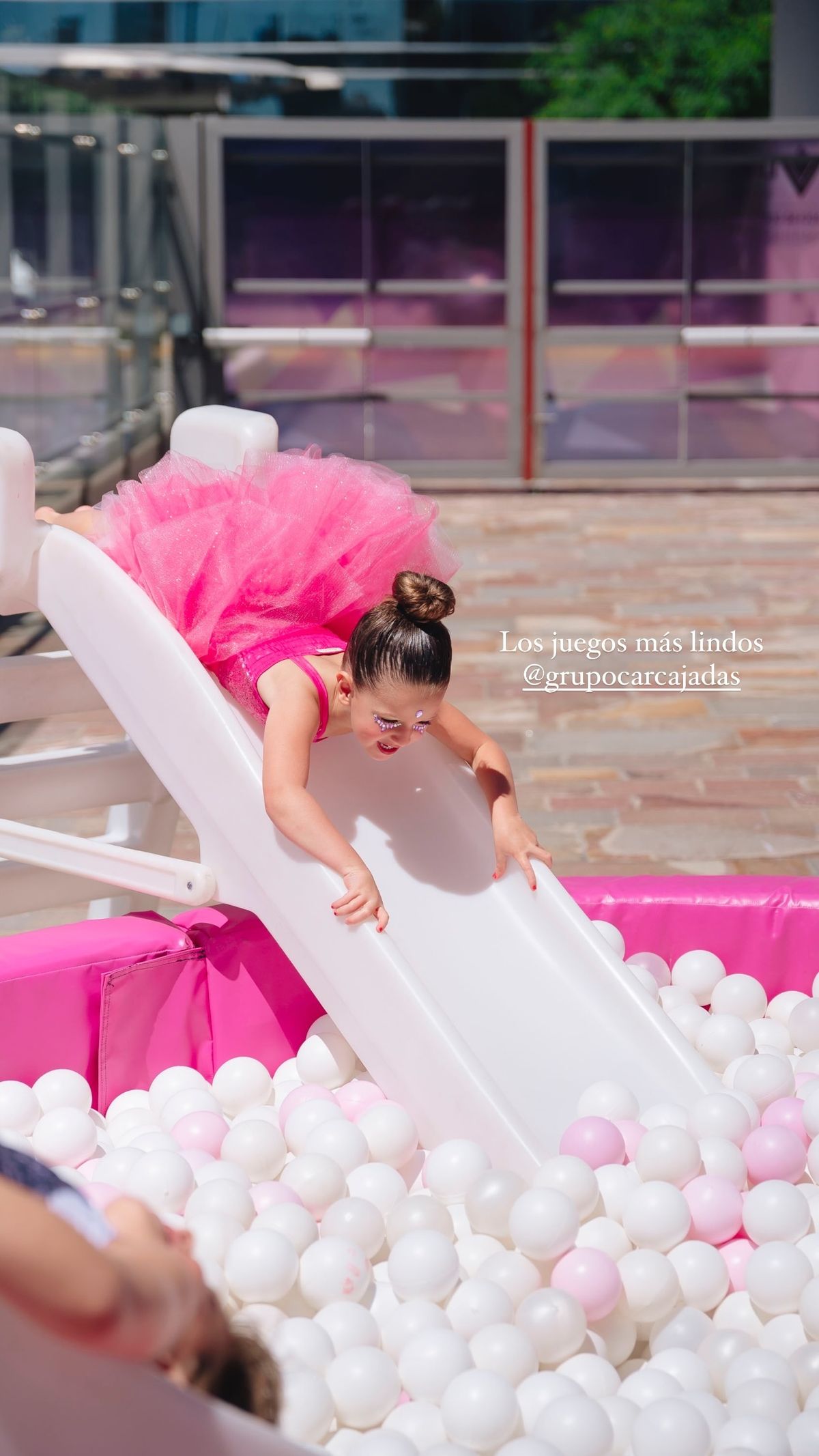 La pequeña, que cumplió cinco años, lució un precioso vestido fuccia con un tutú de bailarina, y en el rostro llevó strass y un rodete en el cabello.