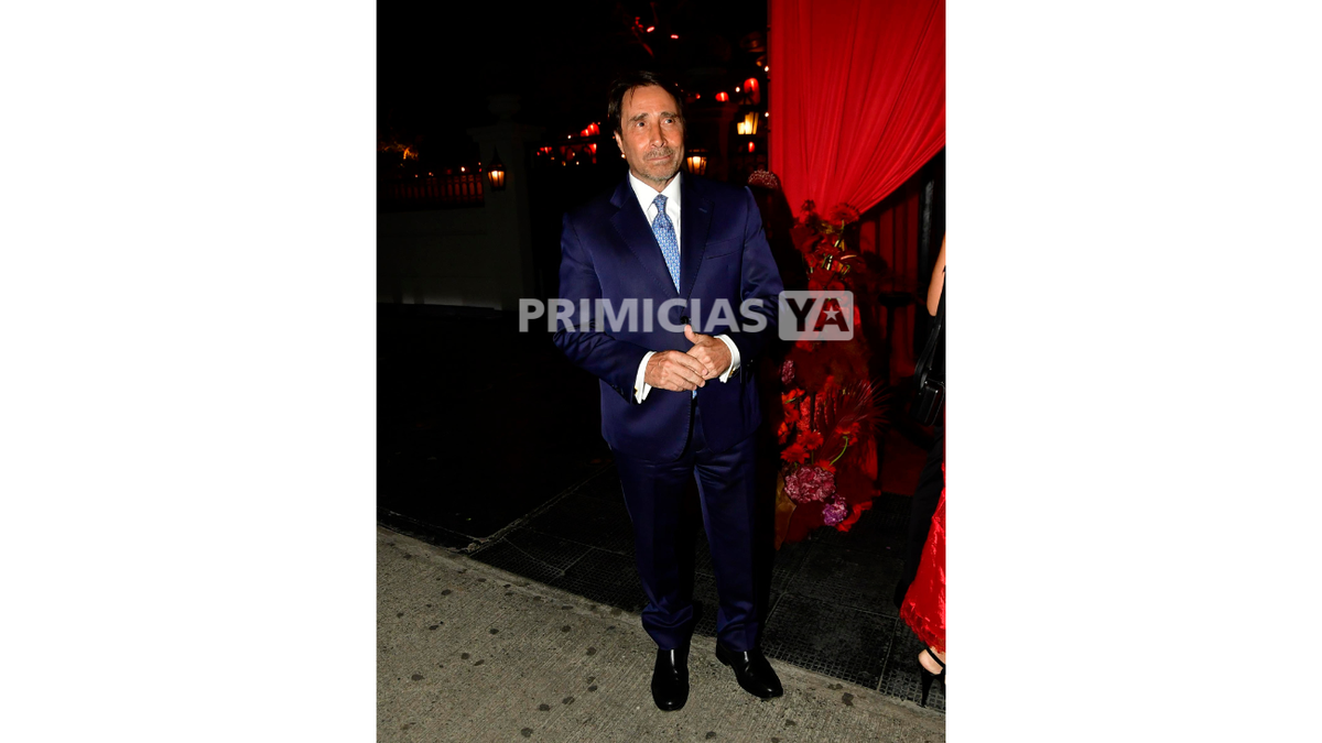 Por su parte, el empresario optó por un esmoquin clásico en color negro, con solapa de satén, camisa blanca y corbata negra. El conjunto lo completó con zapatos negros de vestir, en una elección tradicional y elegante para la ocasión.
