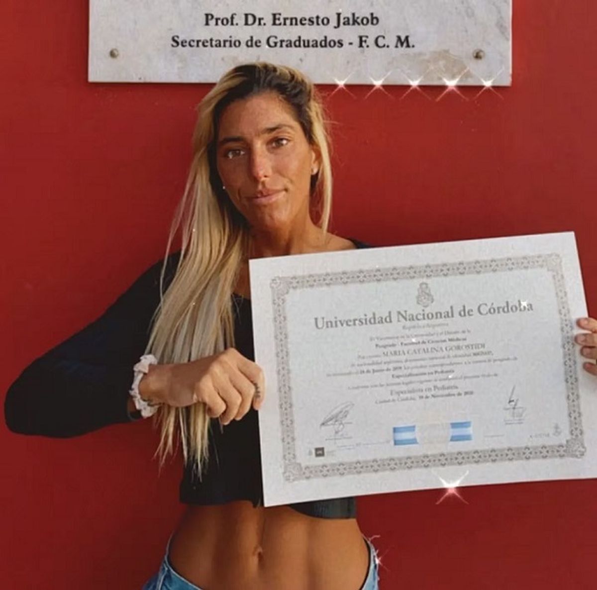 Los usuarios de las redes recordaron la imagen de Cata antes de hacerse conocida en el exitoso programa y se viralizaron rápidamente, donde se la ve posando con su título universitario en mano, luciendo su figura frente al espejo, y en plena tarea laboral sanitaria durante la pandemia.